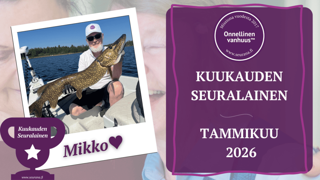 Seuranan lokakuun kuukauden Seuralainen on Teuvo, suuret onnittelut Teuvolle! Teuvo on toiminut Seuralaisena Tohmajärvellä Pohjois-Karjalassa kesästä alkaen. Teuvo saa paljon kiitosta siitä miten hän on alusta asti aktiivisesti kehittänyt ikäihmisille erilaista virikkeellistä toimintaa. Yhdessä ikäihmisen kanssa he muun muassa ulkoilevat, kahvittelevat ja tekevät palapelejä. Teuvo ottaa myös ikäihmisen omaiset hienosti huomioon ja lähettää aina heille…