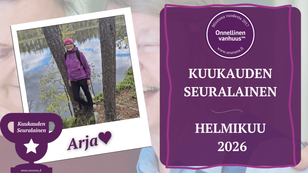Seuranan vanhusystäväpalvelun sydän on kaikki Seuralaisemme, jotka mahdollistavat onnellisen vanhuuden ympäri koko Suomen. Meillä Seuranalla tätä merkityksellistä vanhusystävätyötä tekee jo sadat reippaat ja sydämelliset eläkeläiset. Joka kuukausi yksi heistä saa upeasta työstään kiitoksen Kuukauden Seuralainen- tunnustuksen merkeissä. Näitä tunnustuksia pääsee nyt seuraamaan läpi koko vuoden Seuranan blogissa.
