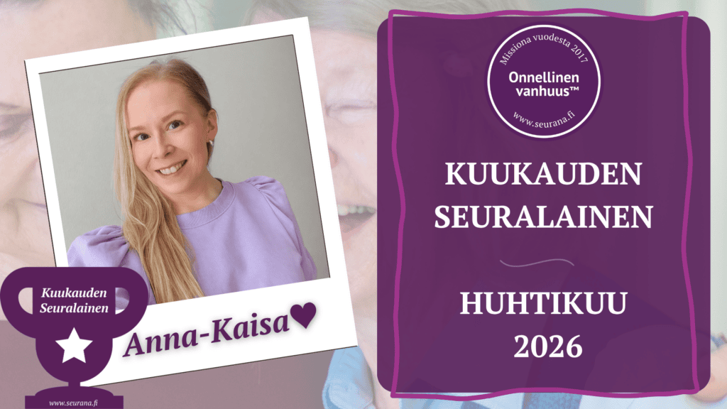Seuranan vanhusystäväpalvelun sydän on kaikki Seuralaisemme, jotka mahdollistavat onnellisen vanhuuden ympäri koko Suomen. Meillä Seuranalla tätä merkityksellistä vanhusystävätyötä tekee jo sadat reippaat ja sydämelliset eläkeläiset. Joka kuukausi yksi heistä saa upeasta työstään kiitoksen Kuukauden Seuralainen- tunnustuksen merkeissä. Näitä tunnustuksia pääsee nyt seuraamaan läpi koko vuoden Seuranan blogissa.